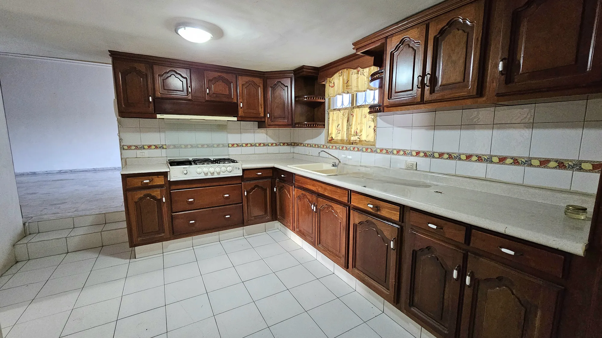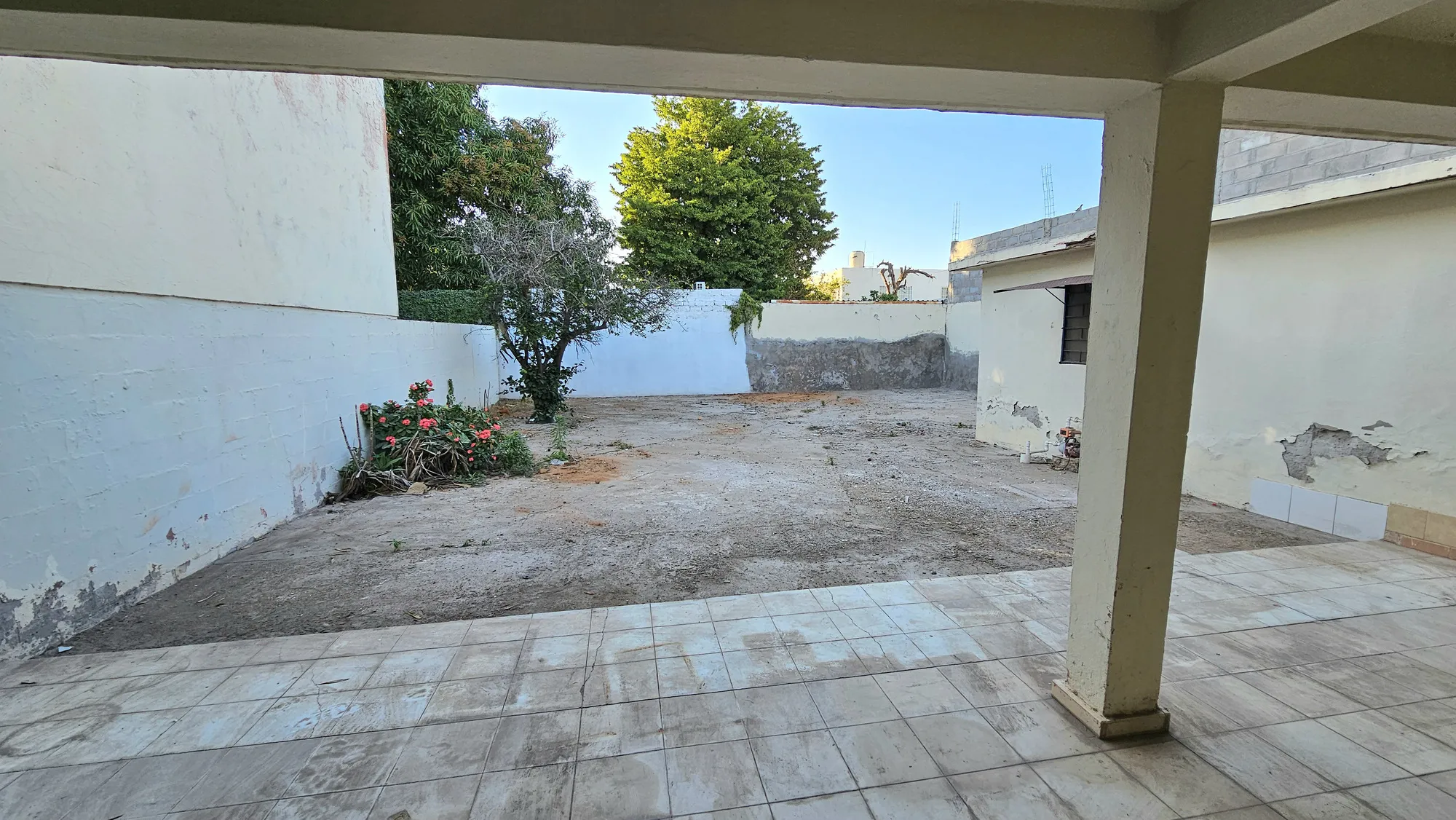 Lavandería techada, cuarto de servicio, amplio patio con cemento pulido.