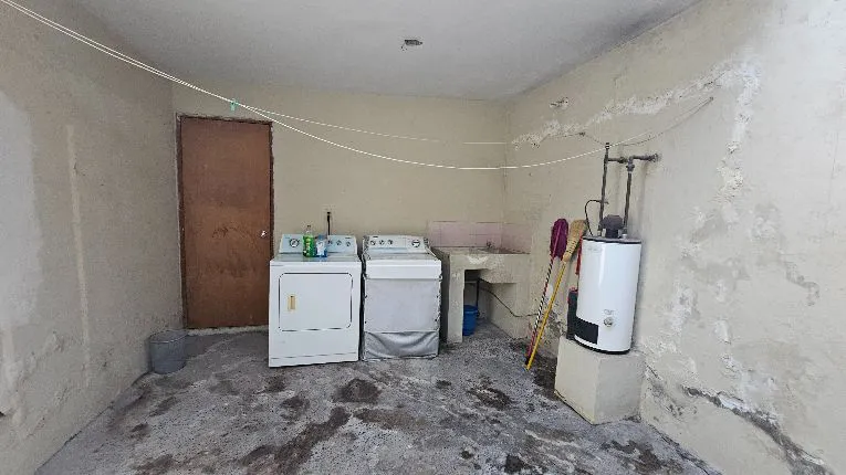 Lavandería techada, cuarto de servicio, amplio patio con cemento pulido.